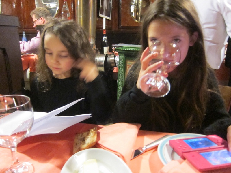 Her two daughters, Saffron and Scarlett (why did my mother name me plain-Jane Carol) joined us. They're tres bonne eleve - they drew, played games quietly through the meal. Only at the end did Scarlett fall asleep on the table.